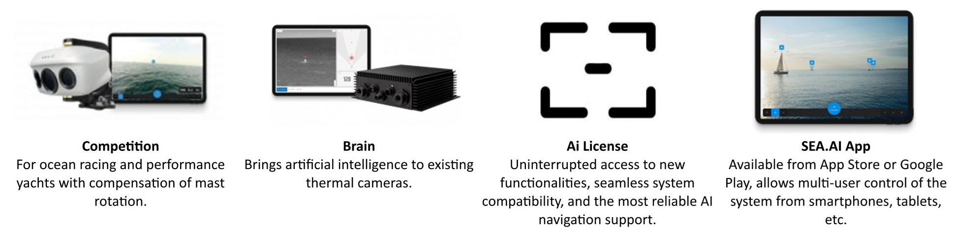 SEA.AI alerts you of any floating obstacle on your course – large and small – day and night. The systems – formerly known as OSCAR – are designed to detect hazards at sea which cannot be detected by radars, AIS or sonar. SEA.AI combines and processes inputs from lowlight and thermal on-board cameras to provide a digital understanding of the vessel’s surroundings on the water. The system’s Artificial Intelligence uses latest Machine Vision technology, best-in-class deep learning capabilities and an ever-growing proprietary database of millions of annotated marine objects.